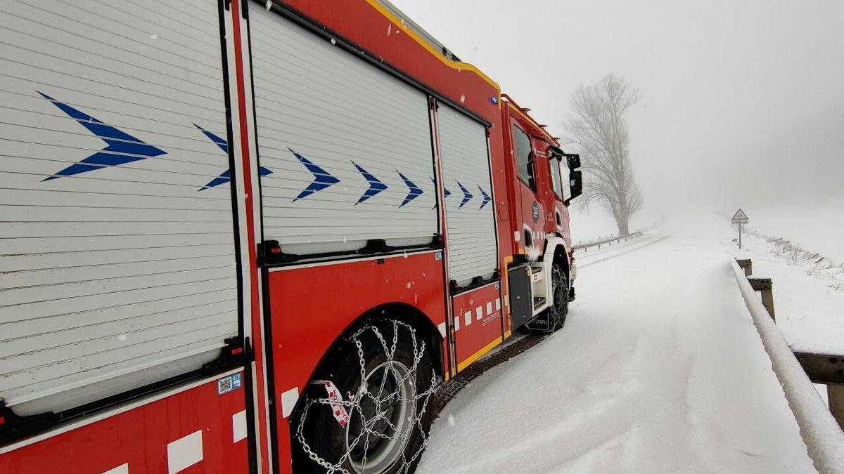 Els Bombers donen assistència a vehicles que s’han quedat atrapats per la neu a la carretera N-141C, al seu pas pel Coll de la Pollosa Bombers de la Generalitat