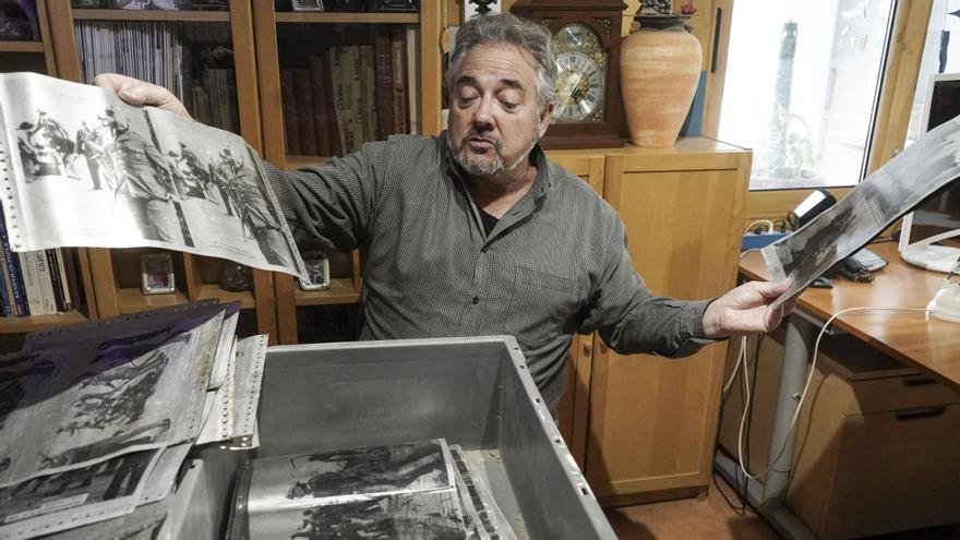 Eduard Sànchez, alcalde de Calders, que també és historiador, conserva fotografies, clixés i documents dels inicis de la transició extrets d’una impremta parroquial de Barcelona on havia treballat de jove