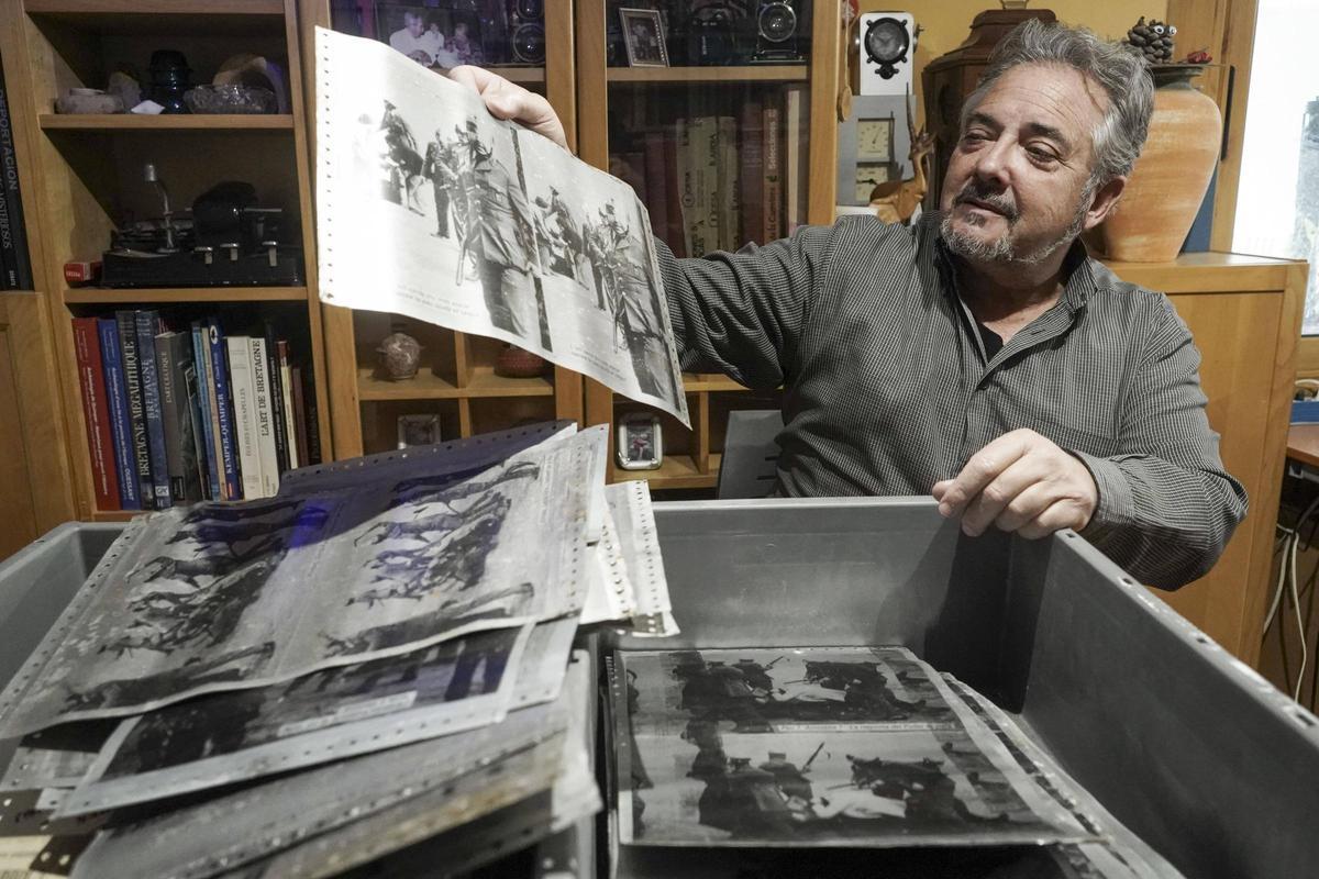Els clixés amb imatges per imprimir són una part important del fons que Sànchez conserva de la impremta / Mireia Arso